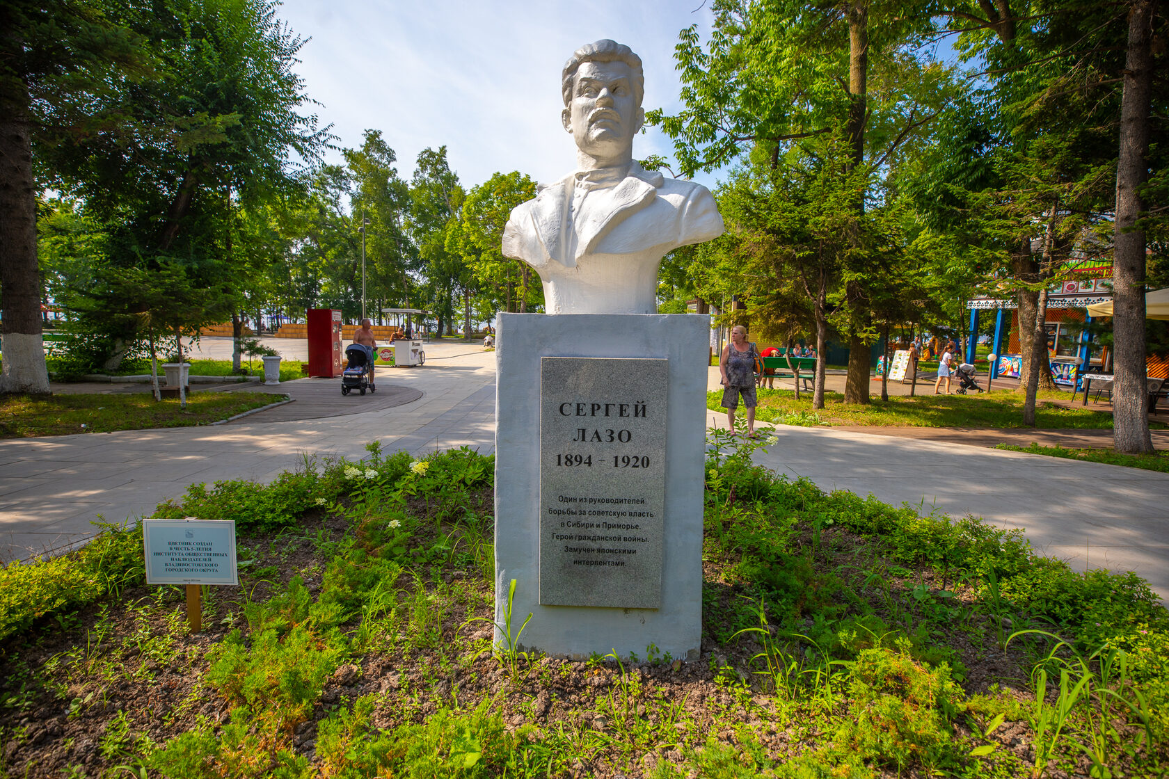 Реконструкция парка им. Сергея Лазо началась в 2022-2023 годах после победы в рейтинговом голосовании за территории для благоустройства. Тогда работы велись в южной части общественного пространства. Здесь обновили площадку у главного входа, уложили новые пешеходные покрытия, построили сцену и амфитеатр для проведения праздников. В пляжной зоне установили кабинки для переодевания и наблюдательные вышки для спасателей.