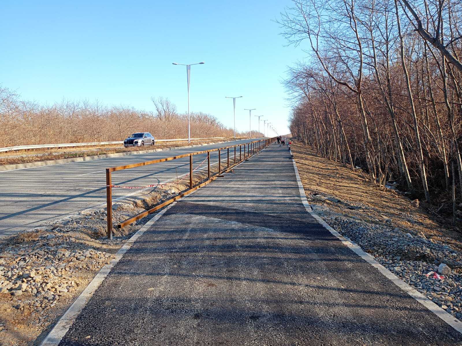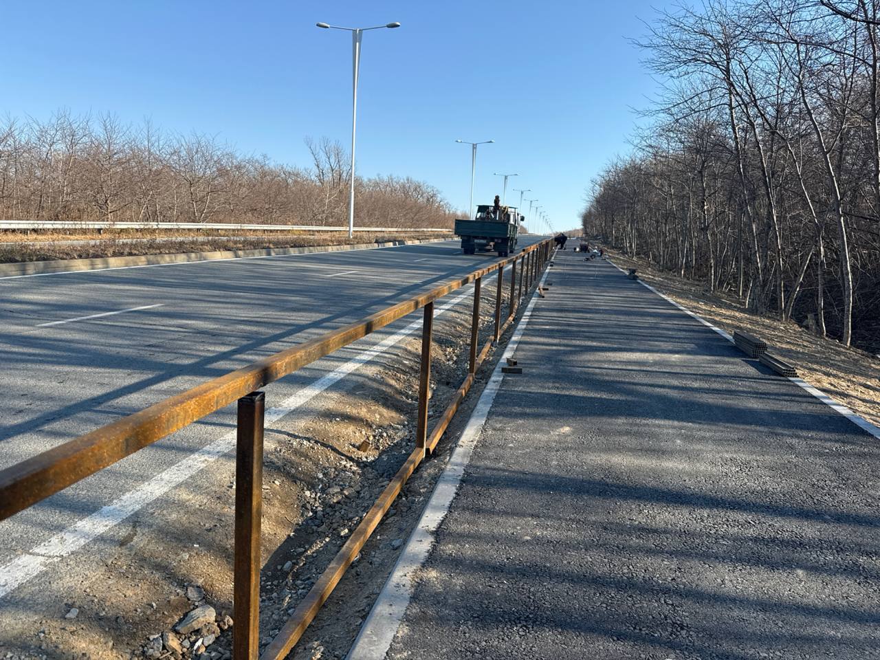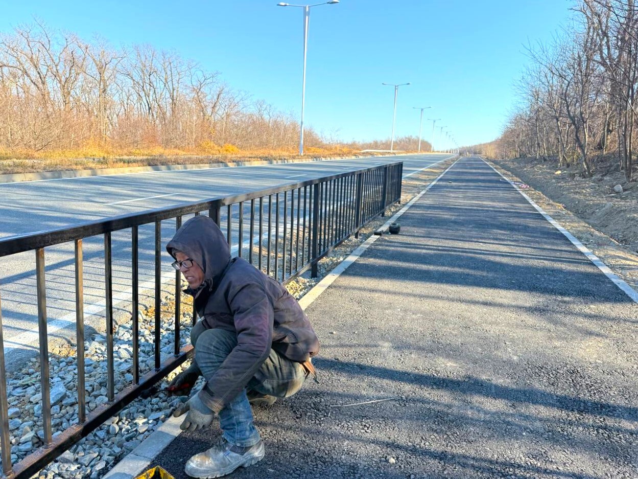 Сейчас подрядчик заканчивает установку и покраску ограждений на опасных участках, а также монтирует ограничители заезда автомобилей, чтобы велодорожка не превратилась в парковку.