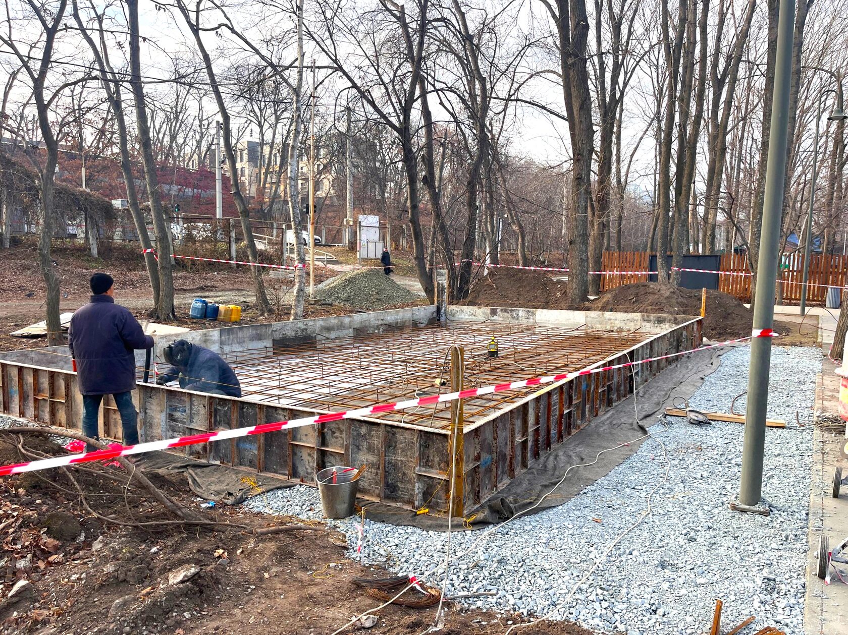12 ноября общественные наблюдатели выехали с плановой проверкой в парк культуры и отдыха им. Сергея Лазо. В северной части парка активными темпами ведутся строительные работы. В общественном пространстве укладывают брусчатку на аллеях и дорожках, проводят дополнительное озеленение и выполняют заливку бетонной плиты для устройства туалета. Кроме того, рабочие приступили к созданию настила, который будет вести к морю.