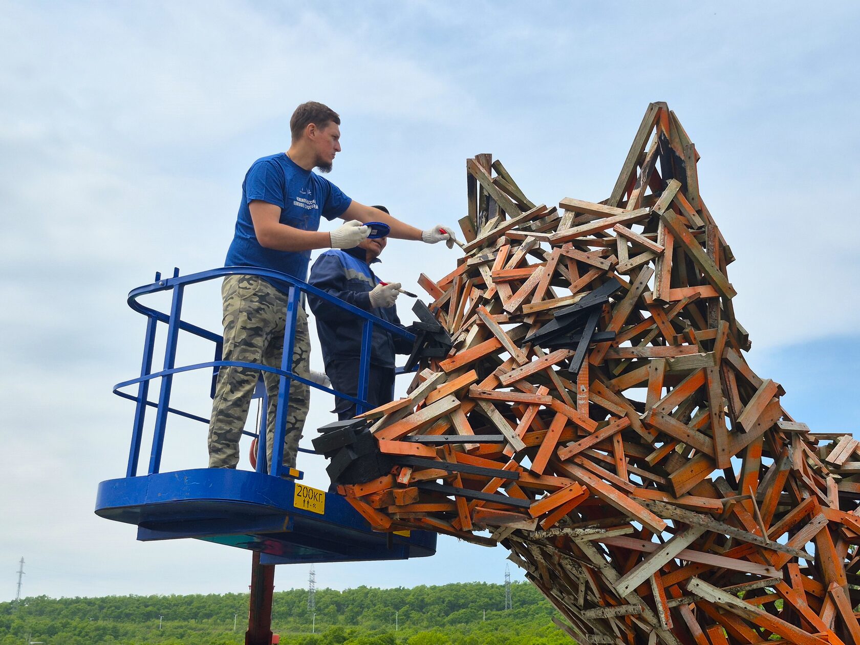 Для обновления скульптуры работники «ВГТ Приморье» подобрали специальную краску, которая устойчива к влаге и может использоваться на улице. Особенный рыжий оттенок помог смешать Андрей Блохин – профессиональный маляр и волонтёр, присоединившийся к акции.