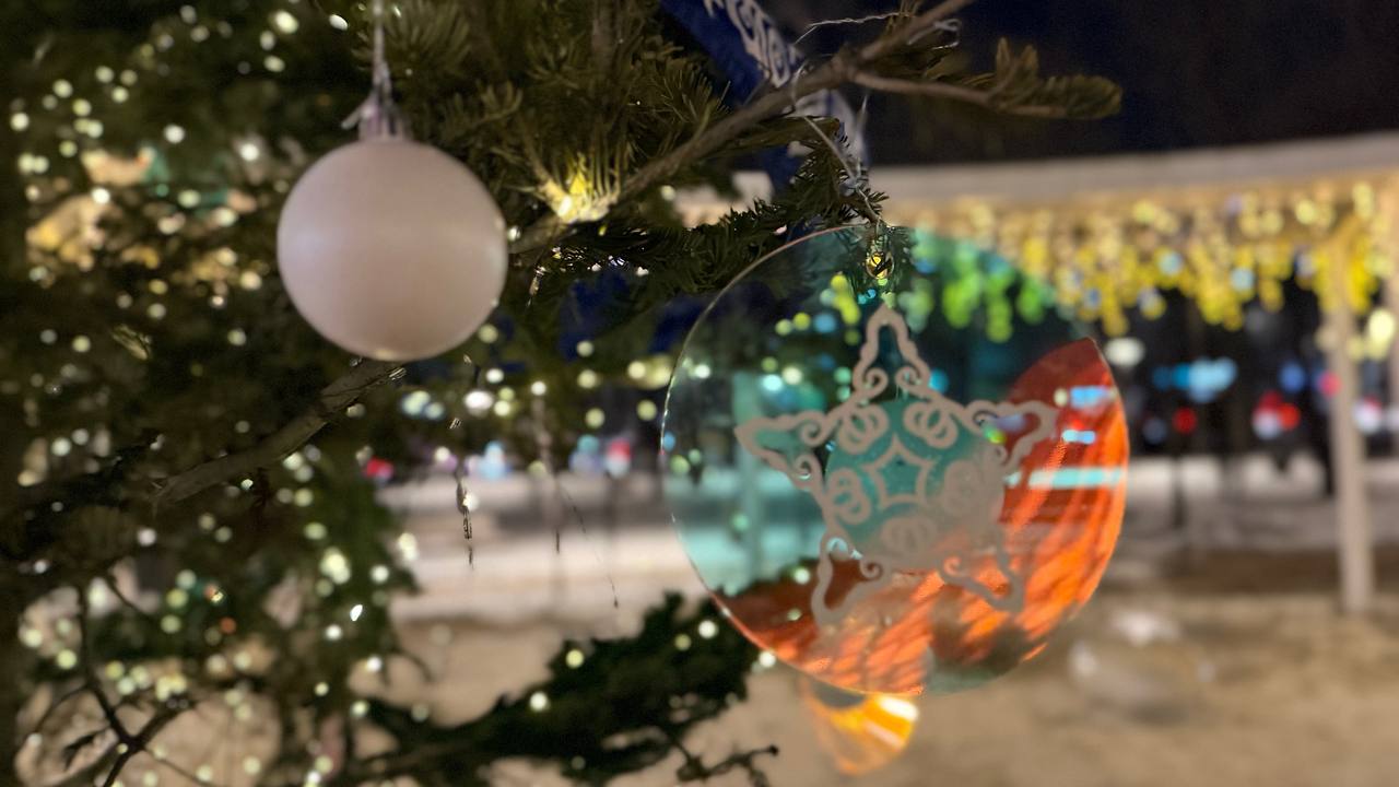 Ёлочку и центральную площадку сквера к Новому году украсили игрушками с узорами коренных народов Приморья.