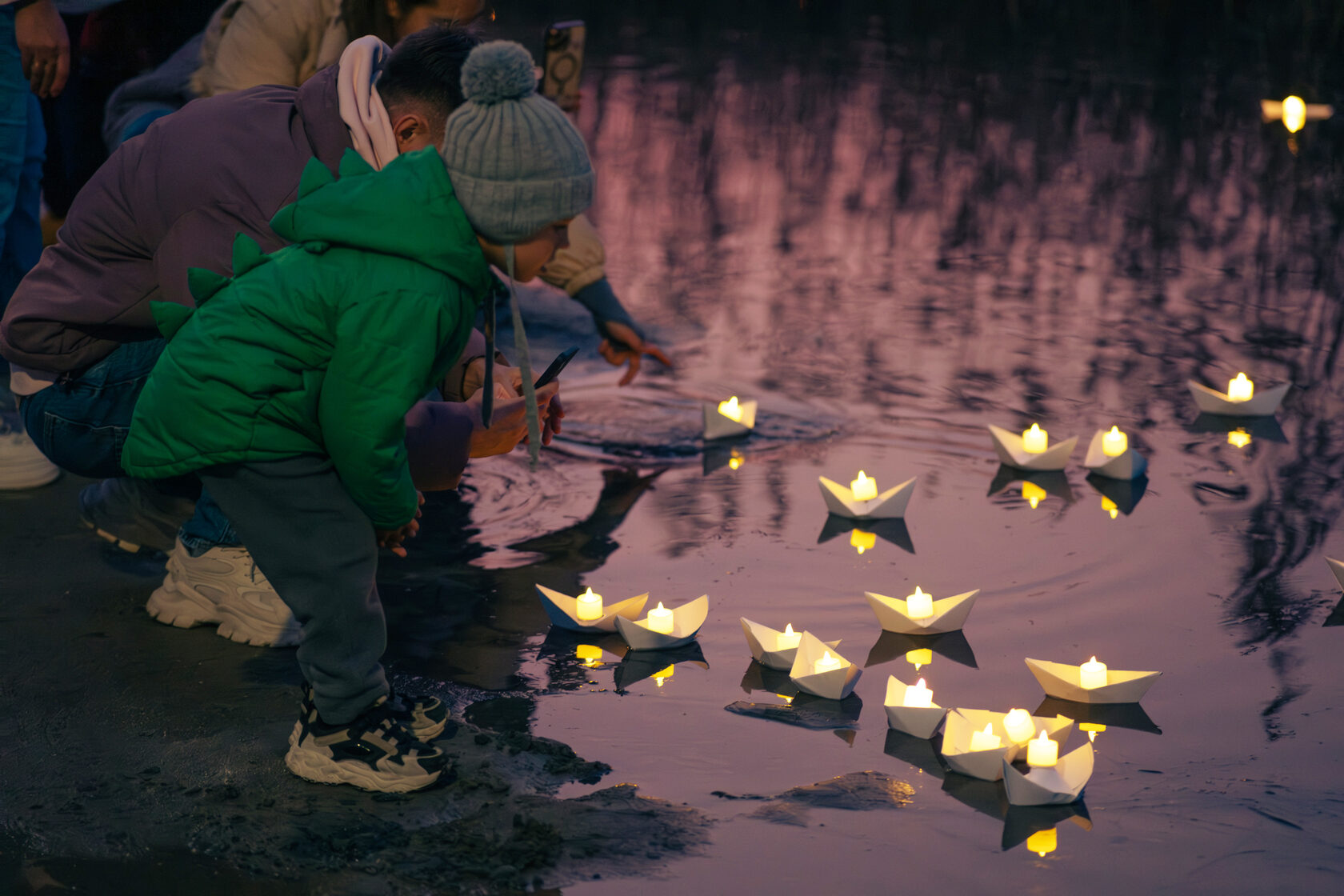 В завершении открытия собравшиеся сложили из бумаги и запустили кораблики с огоньками. Таким образом горожане отдали дань уважения всем смелым и мужественным людям, чья жизнь связана с морем.