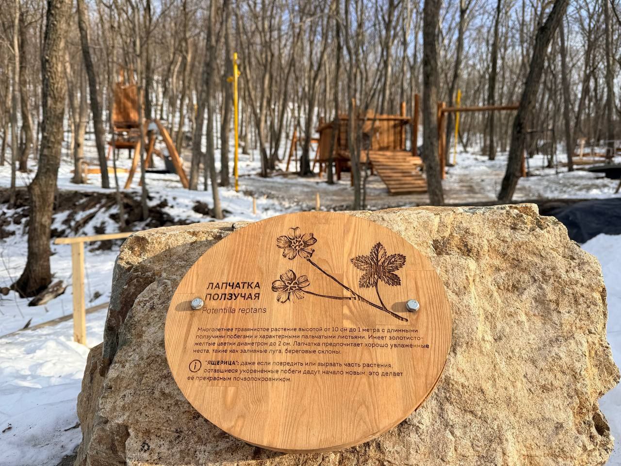 По задумке архитекторов парк наполняется новыми идеями и смыслами, призванными воспитать бережное отношение и любовь к природе. Так здесь появляются информационные таблички с рассказами о деревьях и интересными фактами о флоре и фауне Приморья.