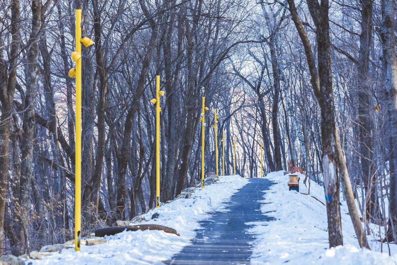 К созданию парка приступили в 2023 году. На первом этапе здесь по нацпроекту сделали большую лестницу со смотровыми площадками.