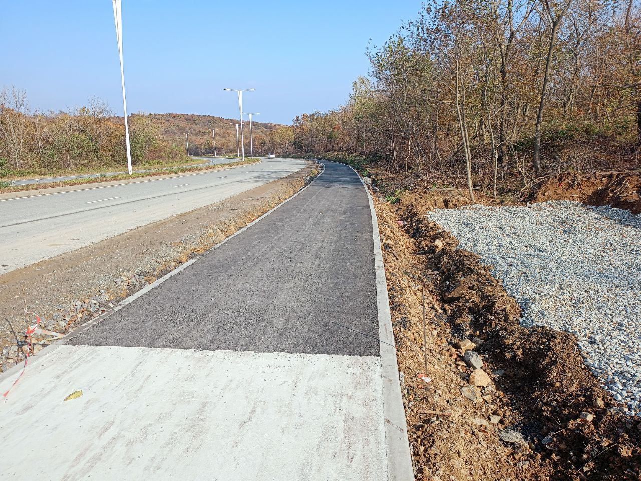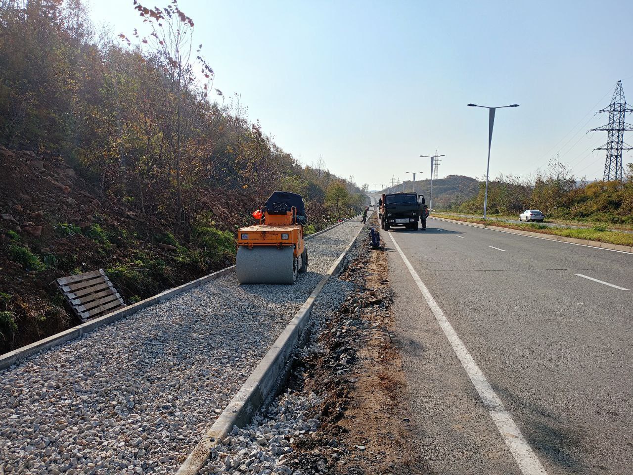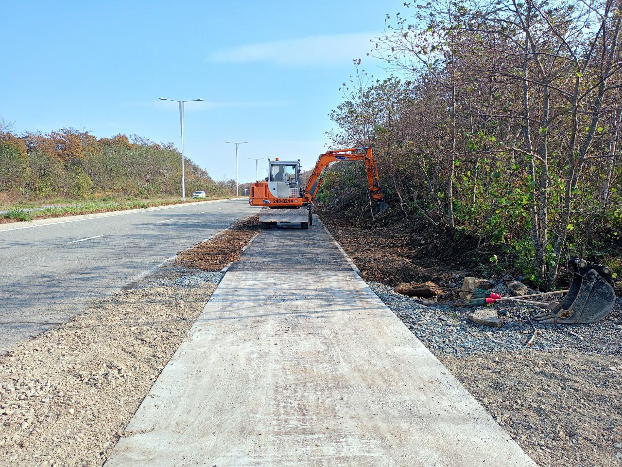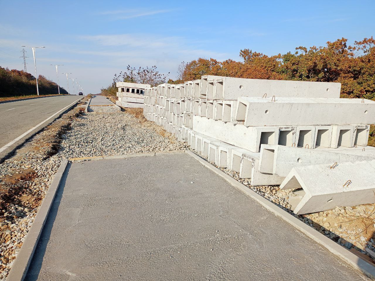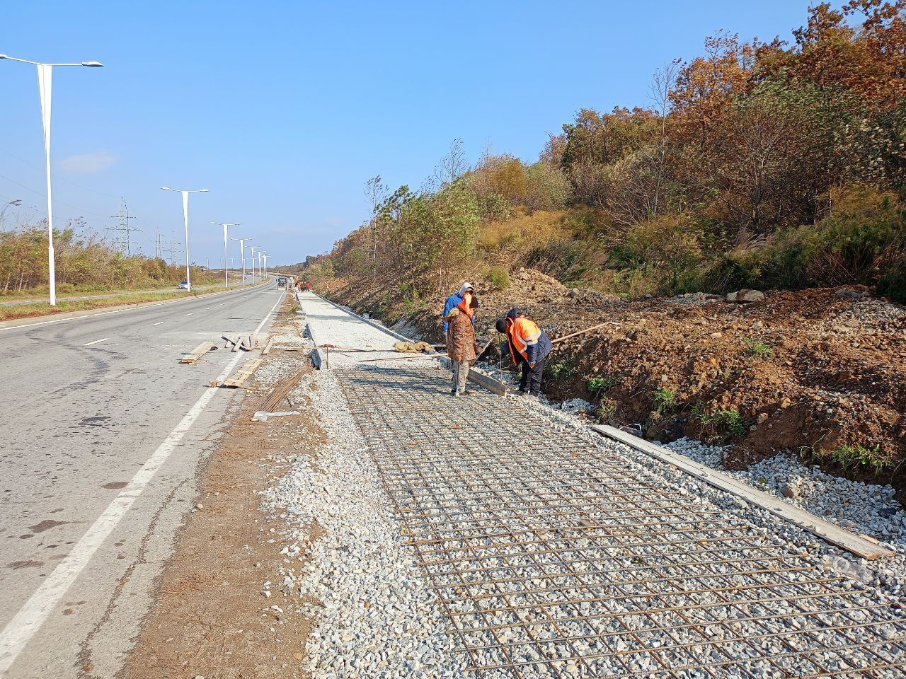 Также на протяжении всего маршрута устанавливают железобетонные лотки для водоотведения и завершают бетонирование площадок для павильонов и сбора ТБО.