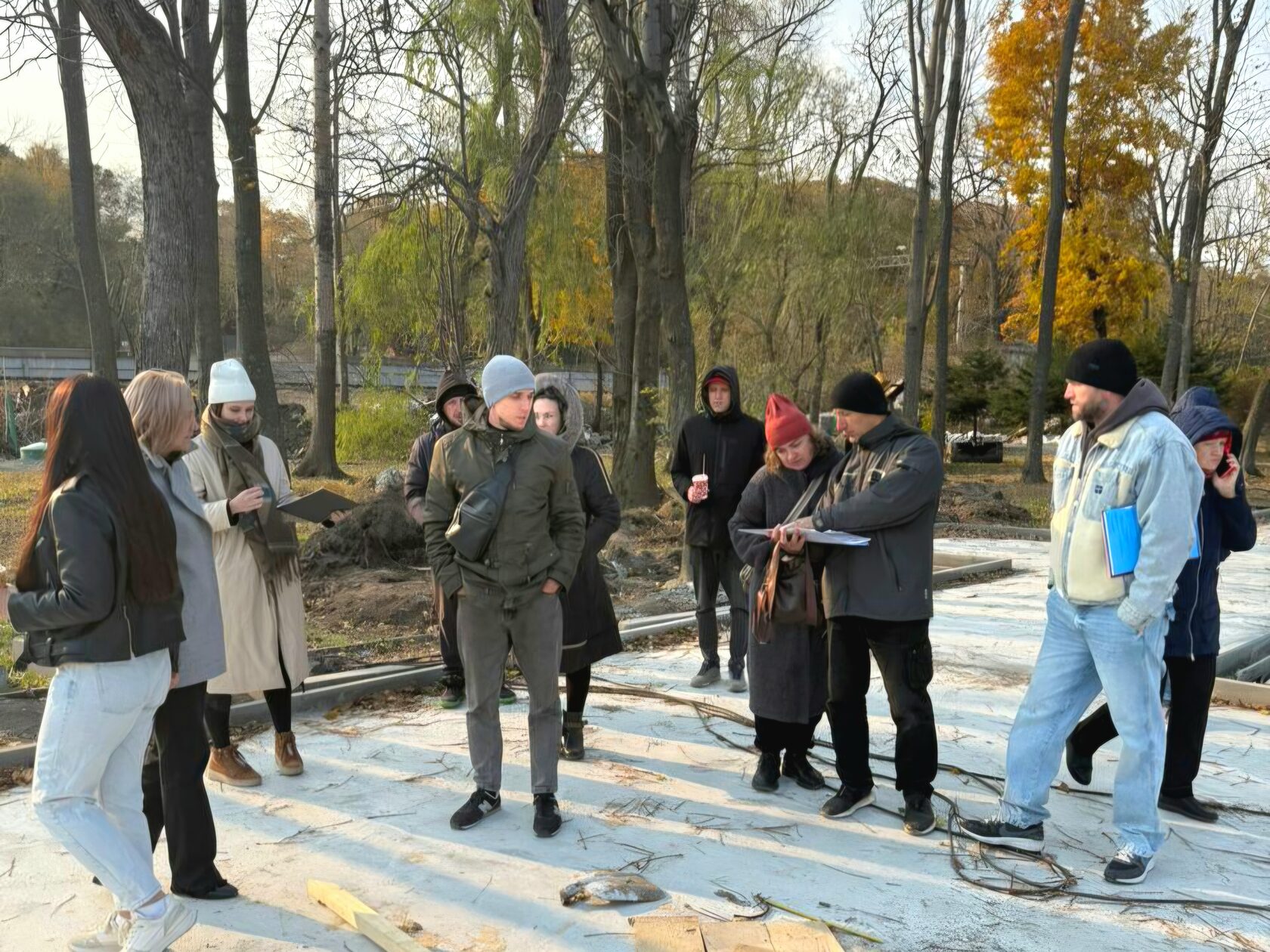 Активисты оценили подходы к обустройству новых дорожек и аллей. На большей части пространства уже выполнена заливка бетонного основания пешеходных путей, и строители готовятся к укладке плитки на магистральных дорожках.